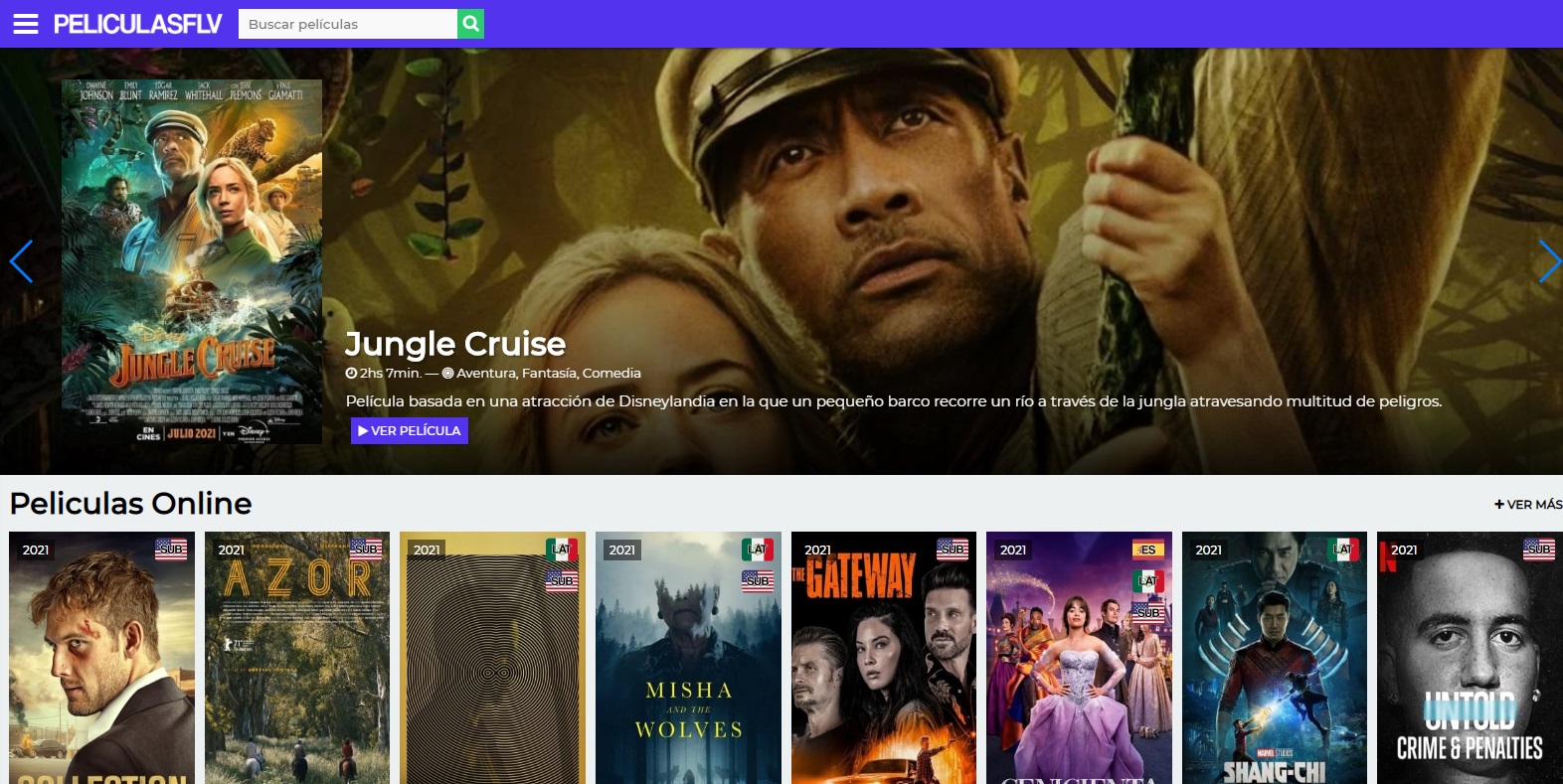 Esta página tiene bastante tiempo en internet y es una de las más visitadas por los usuarios amantes de las películas, pues cuenta con un actual catálogo de obras del séptimo arte en sus idiomas originales y traducidos al español. En su menú principal te permite acceder a las películas por género, idioma, año o por las más vistas.