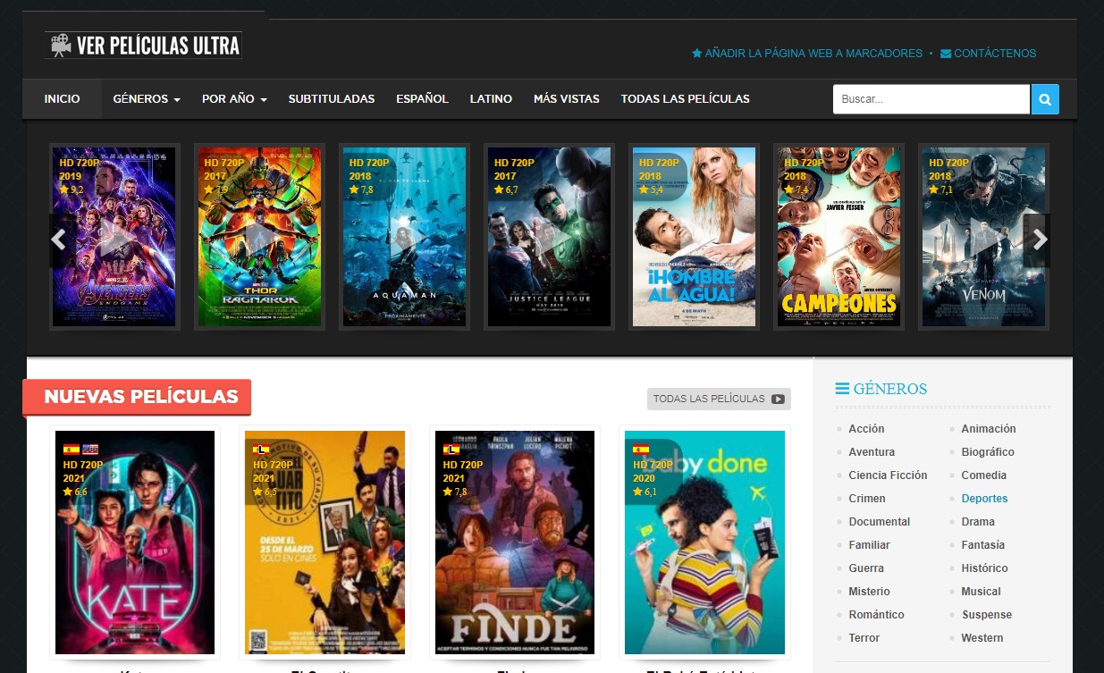 Si quieres ver películas con calidad full HD, sin marca de agua ni interrupciones publicitarias, esta página es una excelente opción para ello. La plataforma te ofrece películas del año con excelente calidad y traducidas al español latino y castellano. Además posee un buscador sencillo y rápido.
